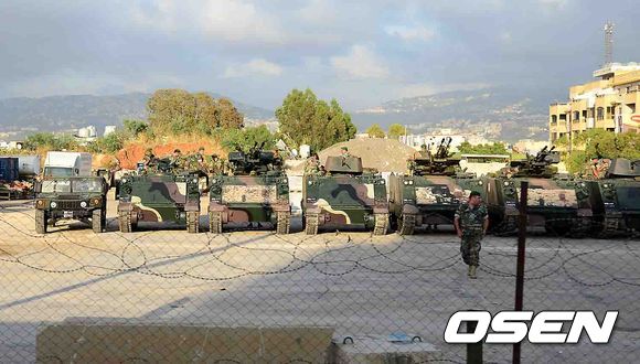 경기장 호위하는 레바논군,'대표팀 안전 이상무'
