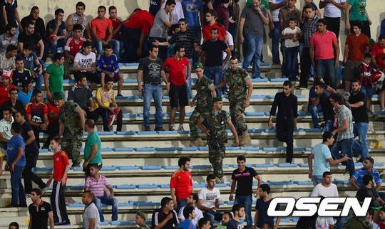 경기장은 수백 명의 무장군인들이 둘러싸 만반의 사태에 대비했다. 한국취재진과 교민응원단은 따로 VIP통로로 입장했다. 방탄유리로 둘러싸여 군인들의 호위를 받는 지역이었다. 반면 레바논 시민들은 반대쪽 관중석에 입장해 서로 충돌할 일이 거의 없었다.