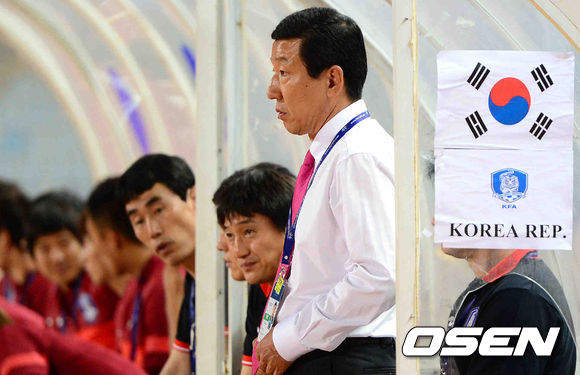 5일 새벽(한국시간) 레바논 베이루트 카밀 샤문 스포츠시티 스타디움에서 열린 2014브라질월드컵 아시아지역 최종예선 A조 6차전 한국과 레바논의 경기, 최강희 감독이 그라운드를 바라보고 있다