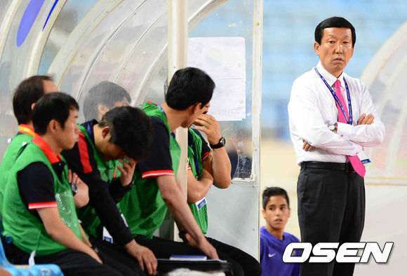 5일 새벽(한국시간) 레바논 베이루트 카밀 샤문 스포츠시티 스타디움에서 열린 2014브라질월드컵 아시아지역 최종예선 A조 6차전 한국과 레바논의 경기,전반 계속되는 골대 불운에 최강희 감독이 아쉬워하고 있다