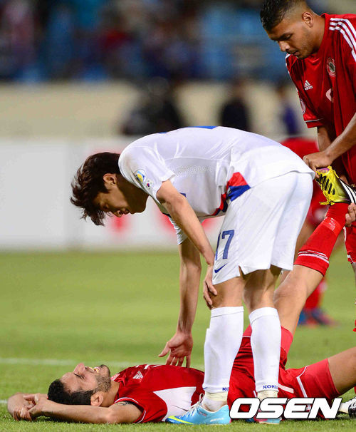 후반 이청요이 시간 지연행동을 하는 레바논 선수에게 말을 건네고 있다 . /sunday@osen.co.kr