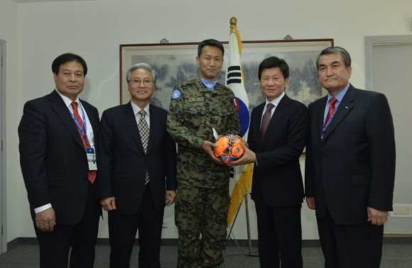 동명부대는 또한 UN으로부터 '최고의 PK부대'라는 평가를 받았고, 현지주민에게 '신이 내린 선물'이라는 찬사를 받고 있는 등 평화 유지 활동을 통해 대한민국의 명예를 드높이고 있다. 이를 위해 대한축구협회 정몽규 회장은 이 자리를 빌어 소정의 성금과 축구공 등을 장병들에게 증정했습니다.