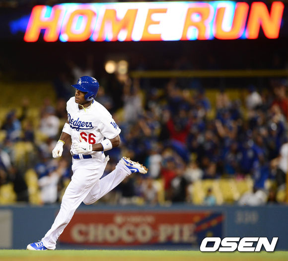 5일 오전(이하 한국시간) 미국 캘리포니아주 로스앤젤레스 다저스타디움에서 열린 LA 다저스와 샌디에이고 파드리스의 경기 5회말 1사 1,2루 푸이그가 스리런포를 친 후 베이스를 돌고 있다.