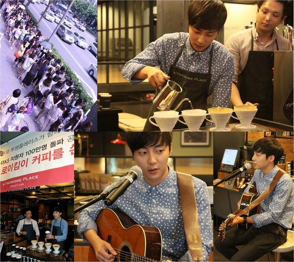 번호표를 받은 후 3시부터 진행된 본 행사에는 로이킴이 바리스타로 변신, 커피를 직접 내려 전달했으며 이 외에도 커피 원두, 마카롱 등 푸짐한 선물을 준비해 큰 호응을 얻었다.