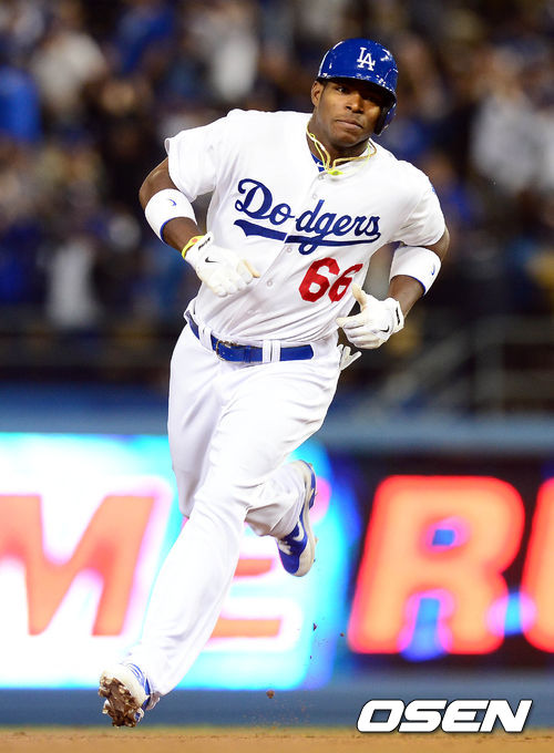 다저스는 이날 미국 캘리포니아주 로스앤젤레스 다저스타디움에서 열린 '2013 메이저리그' 샌디에이고 파드리스와 홈경기에서 푸이그의 동점 스리런 홈런과 쐐기 투런 홈런을 앞세워 9-7 짜릿한 역전승을 거뒀다.