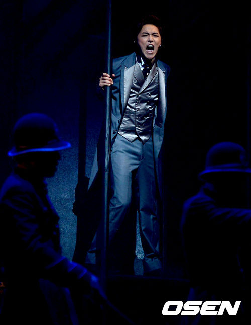 5일 오후 경기도 야탑동 성남아트센터 오페라하우스에서 열린 뮤지컬 '잭 더 리퍼' 프레스콜에 참석한 가수 정동하와 배우들이 열연하고 있다.