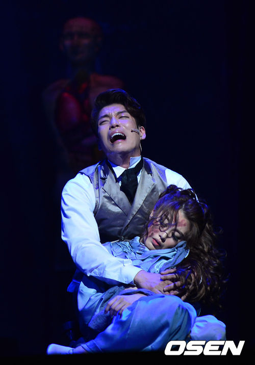 5일 오후 경기도 야탑동 성남아트센터 오페라하우스에서 열린 뮤지컬 '잭 더 리퍼' 프레스콜에 참석한 그룹 2AM 창민과 뮤지컬 배우 김여진이 열연하고 있다.