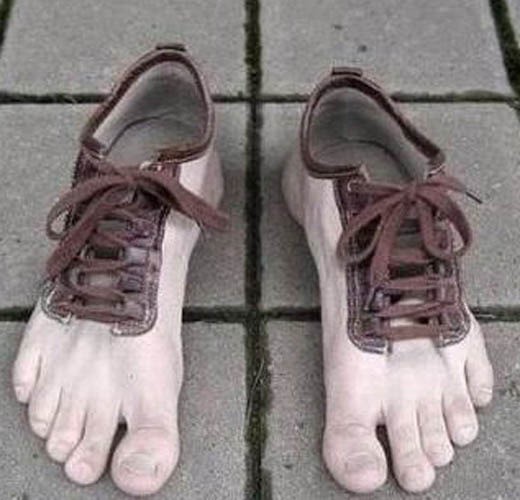 최근 온라인 커뮤니티에는 '거인 되는 신발'이라는 제목의 사진이 올라왔다. 사진 속 신발은 거대한 발 모양이 실감나게 표현돼 있으며 사람이 신으면 발이 커지는 모양으로 되어있다. 이에 네티즌들이 해당 사진에 '거인 되는 신발'이라는 이름을 붙인 것.