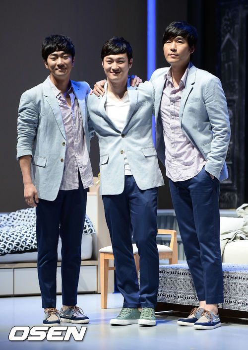 5일 오후 서울 강남구 대치동 KT&G상상아트홀에서 진행된 뮤지컬 '투모로우 모닝' 프레스콜에서 송용진, 이창용, 정상윤이 포토타임을 갖고 있다.