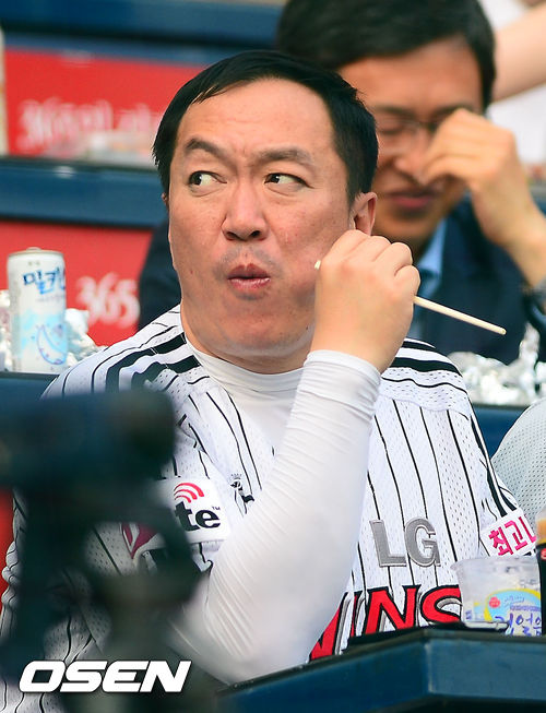 5일 오후 서울 잠실구장에서 열린 2013 한국야쿠르트 세븐프로야구 LG 트윈스와 두산 베어스의 경기에서 탤런트 박상면이 경기를 관람하고 있다.