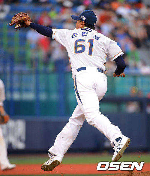 5일 오후 창원 마산구장에서 열린 '2013 한국야쿠르트 세븐 프로야구' NC 다이노스와 SK 와이번스 경기,2회초 무사 1루 박정권의 투수앞 땅볼때 NC선발 손민한이 포구하며 2루주자를 아웃처리 시켰다.