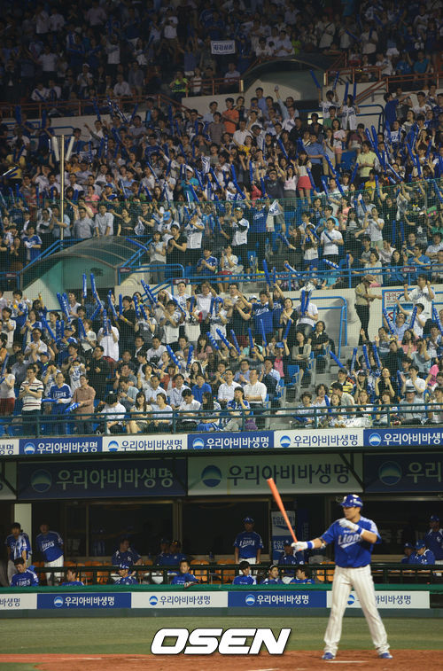 5일 오후 서울 목동구장에서 '2013 한국야쿠르트 세븐 프로야구' 넥센 히어로즈 대 삼성 라이온즈의 경기가 열렸다. 5회초 삼성 공격 무사 만루상황 3번 이승엽 타석 때 삼성 팬들이 홈런을 연호하며 이승엽을 응원하고 있다.