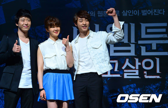 5일 오후 서울 합정동 메세나폴리스 인터파크 아트센터에서 진행된 영화 '더 웹툰:예고살인' 쇼케이스에서 출연배우들이 포즈를 취하고 있다