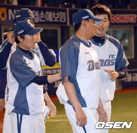 5일 오후 창원 마산구장에서 열린 '2013 한국야쿠르트 세븐 프로야구' NC 다이노스와 SK 와이번스 경기,손민한(38)과 이호준(37)이라는 최고참들이 투·타에서 솔선수범한 NC가 SK에 대승을 거두고 전날 패배를 설욕했다.