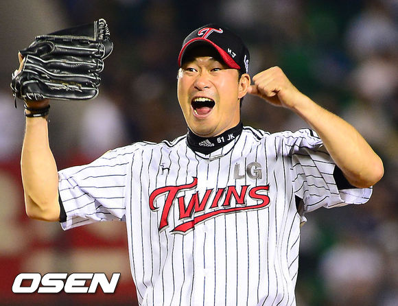 9회말 1사 주자 1루 두산 김현수의 타구를 유격수 병살타로 끝내며 LG 봉중근이 포효하고 있다./ rumi@osen.co.kr