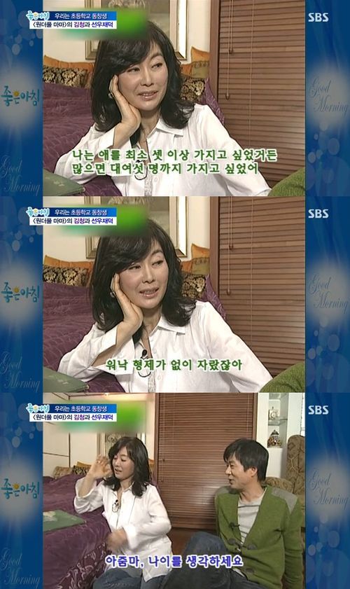 배우 김청의 출산욕심에 초등학교 동창인 배우 선우재덕이 “나이를 생각해라”라고 돌직구를 날렸다.