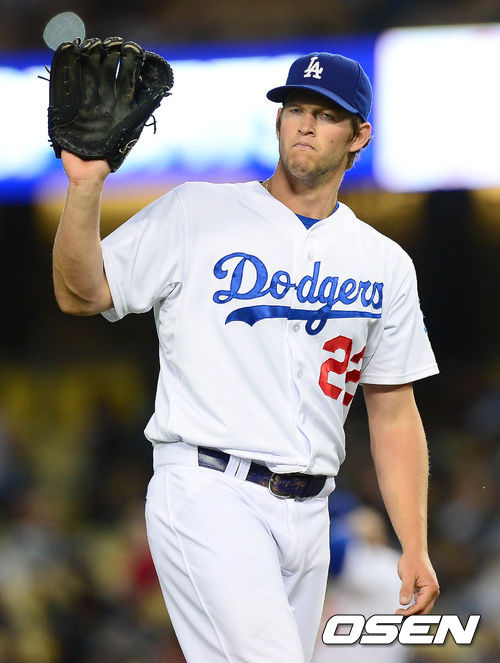6일 오전(이하 한국시간) 미국 캘리포니아주 로스앤젤레스 다저스타디움에서 열린 LA 다저스와 샌디에이고 파드리스의 경기 4회초 1사 구즈만의 홈런성 타구가 잡히자 커쇼가 안도의 표정을 짓고 있다.