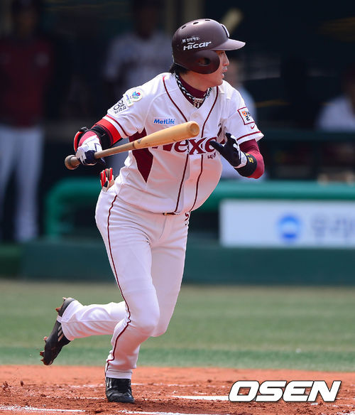 6일 오후 서울 목동구장에서 열린 '2013 한국야쿠르트 세븐 프로야구' 넥센 히어로즈와 삼성 라이온즈의 경기 1회말 무사 2루 넥센 장기영이 선취 1타점 적시타를 날리고 있다