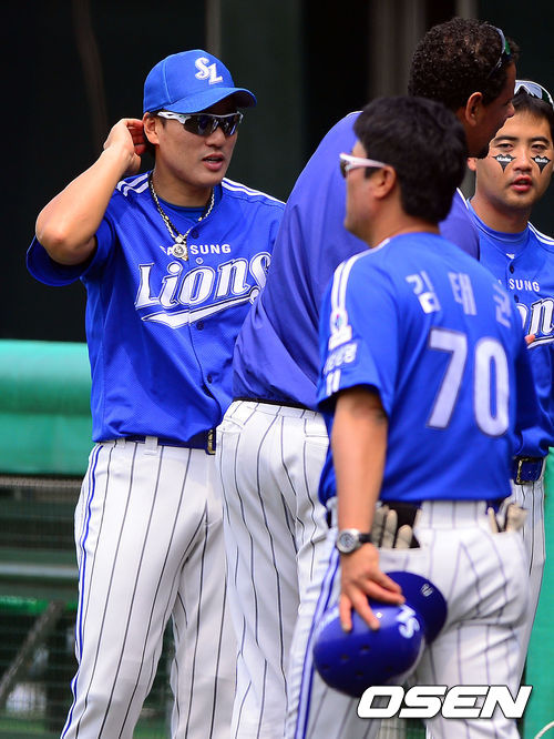 6일 오후 서울 목동구장에서 열린 '2013 한국야쿠르트 세븐 프로야구' 넥센 히어로즈와 삼성 라이온즈의 경기에 앞서 묵념을 마친 삼성 이승엽이 더그아웃으로 들어가고 있다.