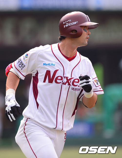 6일 오후 서울 목동구장에서 열린 '2013 한국야쿠르트 세븐 프로야구' 넥센 히어로즈와 삼성 라이온즈의 경기 3회말 1사 1,3루 넥센 서동욱이 1타점 적시타를 날린 후 타구를 바라보고 있다