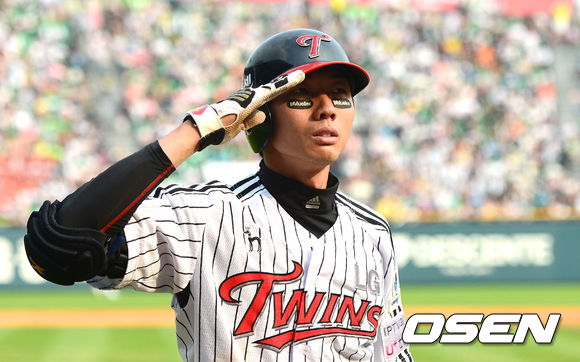 6일 오후 서울 잠실야구장에서 '2013 한국야쿠르트 세븐 프로야구' LG 트윈스 대 두산 베어스의 경기가 열렸다. 8회말 LG 공격 1사 주자없는 상황 2번 김용의가 우월 역전 솔로포를 날리고 팬들을 향해 인사하고 있다.