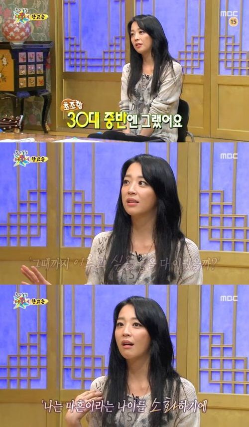 한고은은 6일 오후 방송된 MBC 예능프로그램 ‘황금어장-무릎팍도사’에서 서른아홉이라는 나이가 불안하지 않냐는 MC 강호동의 질문에 "30대 중반엔 그랬다. 쉼 없이 일을 해왔고 심신이 지쳐서 뒤를 돌아보니 친구들은 결혼을 했다. 나는 혼자 남았다. 그게 공포로 다가오더라"고 답했다.