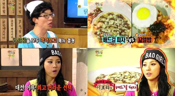 6일 오후 방송된 KBS 2TV 예능프로그램 ‘해피투게더3’에서는 이효리의 ‘배드걸 피자’가 야간매점 최종 메뉴로 등록되는 모습이 전파를 탔다.