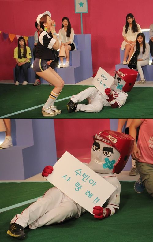 넥센 마스코트 턱돌이가 그룹 달샤벳 뮤직비디오에 출연해 '수빈 앓이'를 펼쳤다.