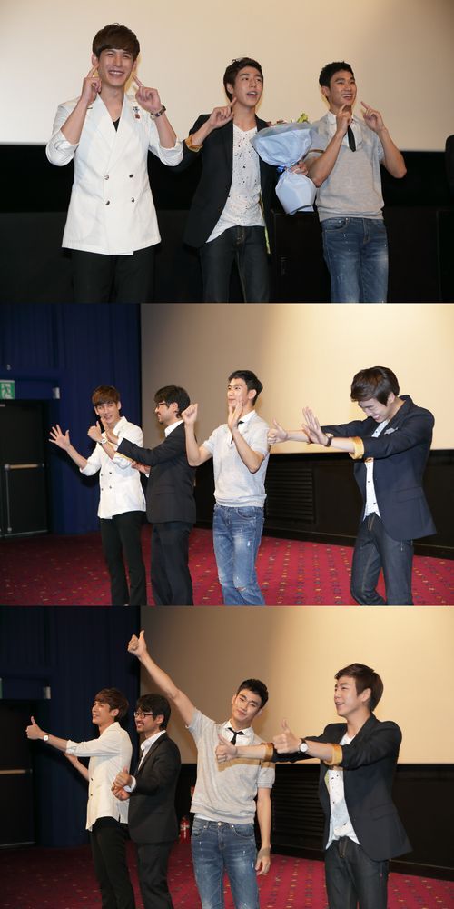 7일 ‘은밀하게 위대하게’ 배급사인 쇼박스에 따르면 지난 6일 100만 관객돌파 소식이 전해진 뒤 관객들은 김수현, 박기웅, 이현우, 그리고 장철수 감독이 상영관을 찾을 때마다 ‘귀요미송’을 연호했고, 이에 세 배우의 화답이 이어졌다. SBS ‘인기가요’ MC로 활약하는 이현우의 진행에 맞춰 네 사람은 부끄러워하면서도 깜찍하게 ‘귀요미송’을 소화해 호응을 이끌어냈다는 전언이다.