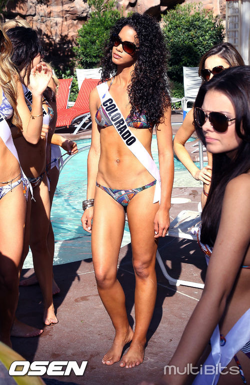 [OSEN/ WENN 특약] 2013 미스 USA 선발대회에 참가한 미스 콜로라도 USA 아만다 윌리이 6일 미국 네바다주 라스베가스 플라밍고 호텔 카지노 수영장에서 열린 패들보드 레이스에 참가해 포즈를 취하고 있다.