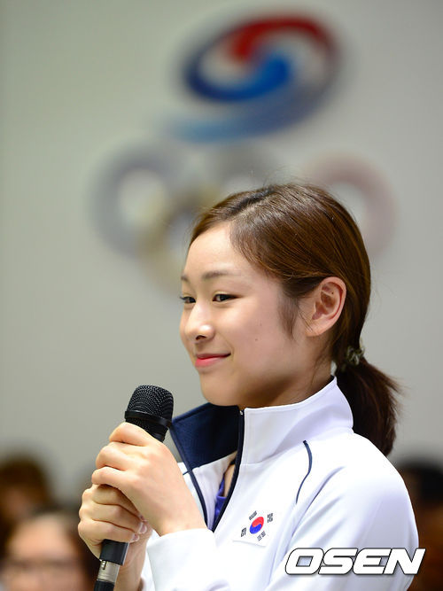 7일 오전 태릉선수촌 챔피언하우스에서 열린 동계종목 체육인의 염원과 각오를 담은 '2014 소치 및 2018 평창동계올림픽대회 성공다짐대회'에서 피겨 선수 김연아가 선수 각오 발표를 하고 있다.