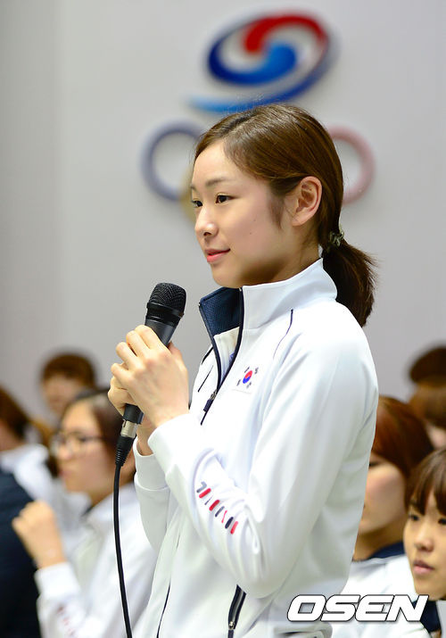 7일 오전 태릉선수촌 챔피언하우스에서 열린 동계종목 체육인의 염원과 각오를 담은 '2014 소치 및 2018 평창동계올림픽대회 성공다짐대회'에서 피겨 선수 김연아가 선수 각오 발표를 하고 있다.