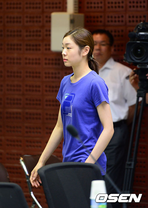 7일 오전 태릉선수촌 챔피언하우스에서 열린 동계종목 체육인의 염원과 각오를 담은 '2014 소치 및 2018 평창동계올림픽대회 성공다짐대회'에서 피겨 김연아가 다짐대회장으로 이동하고 있다.