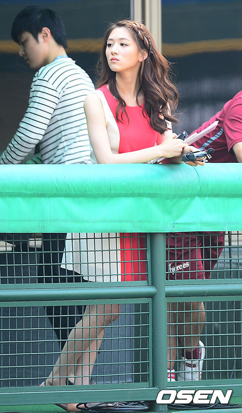 7일 오후 서울 목동구장에서 2013 한국야쿠르트 세븐프로야구 넥센 히어로즈와 KIA 타이거즈의 경기가 열릴 예정인 가운데 양 팀 훈련시간에 XTM 조유영 아나운서가 인터뷰를 기다리고 있다.