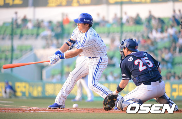 7일 오후 대구구장에서 열린 '2013 한국야쿠르트 세븐 프로야구' 삼성 라이온즈 와 두산 베어스 경기, 1회말 무사 1,3루 이승엽 삼진아웃 처리되고 있다.