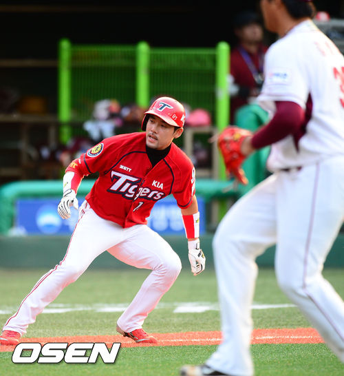 7일 오후 서울 목동구장에서 열린 2013 한국야쿠르트 세븐프로야구 넥센 히어로즈와 KIA 타이거즈의 경기에서 1회초 1사2,3루 KIA 나지완 타석때 3루 주자 이용규가 야수선택으로 아웃되고 있다.