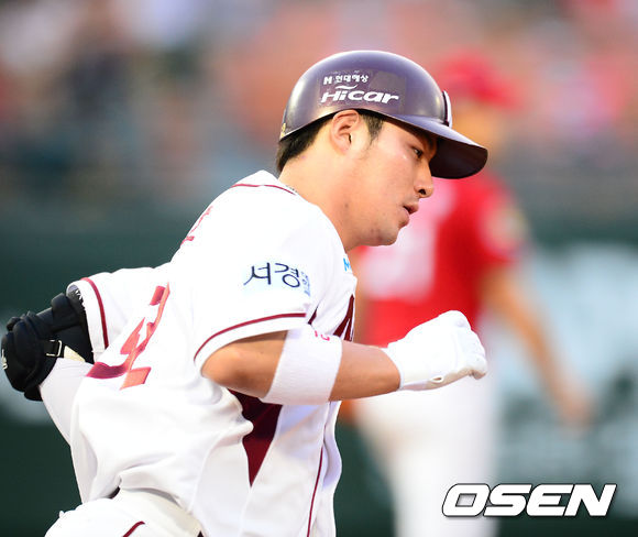 7일 오후 서울 목동구장에서 열린 2013 한국야쿠르트 세븐프로야구 넥센 히어로즈와 KIA 타이거즈의 경기, 4회말 1사 주자 없는 상황에서 넥센 박병호가 우월 동점 솔로홈런을 날린 후 그라운드를 돌고 있다.