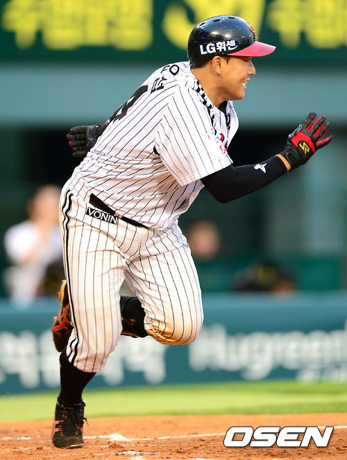 7일 오후 잠실야구장에서 열린 '2013 한국야쿠르트 세븐 프로야구' LG 트윈스와 롯데 자이언츠의 경기, 3회말 2사 2,3루에서 LG 윤요섭이 좌전 적시타를 치고 그라운드를 달리고 있다.