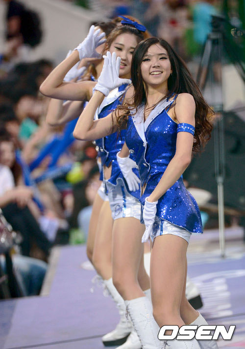 7일 오후 대구구장에서 열린 '2013 한국야쿠르트 세븐 프로야구' 삼성 라이온즈 와 두산 베어스 경기, 삼성 치어리더들이 흥겨운 리듬에 맞춰 댄스를 선보이고 있다.