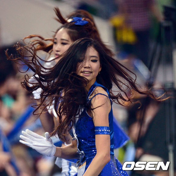 7일 오후 대구구장에서 열린 '2013 한국야쿠르트 세븐 프로야구' 삼성 라이온즈 와 두산 베어스 경기, 삼성 치어리더들이 흥겨운 리듬에 맞춰 댄스를 선보이고 있다.