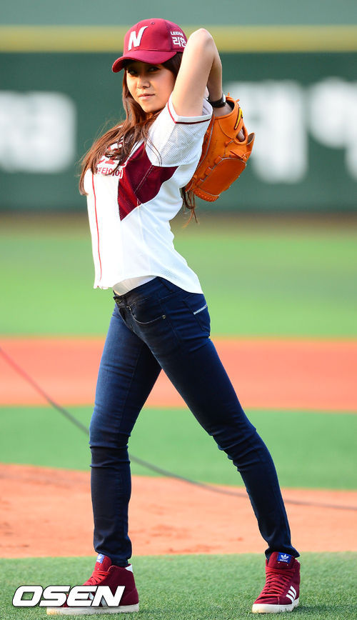 선우는 이날 스키니진에 빨간 스니커즈를 신고 상의에는 야구 유니폼을 차려입고 마운드에 나섰다. 선우는 연습을 많이 한 듯 깔끔한 투구폼으로 시구에 성공했다.