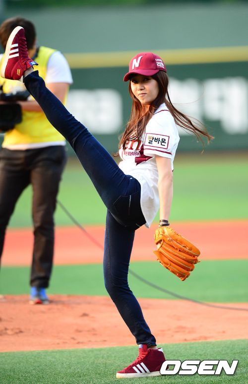 선우는 이날 스키니진에 빨간 스니커즈를 신고 상의에는 야구 유니폼을 차려입고 마운드에 나섰다. 선우는 연습을 많이 한 듯 깔끔한 투구폼으로 시구에 성공했다.