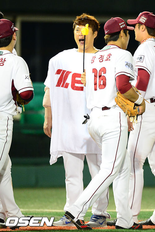 경기를 마치고 넥센 송신영이 승리 축하 세레모니를 하고 있다. / rumi@osen.co.kr