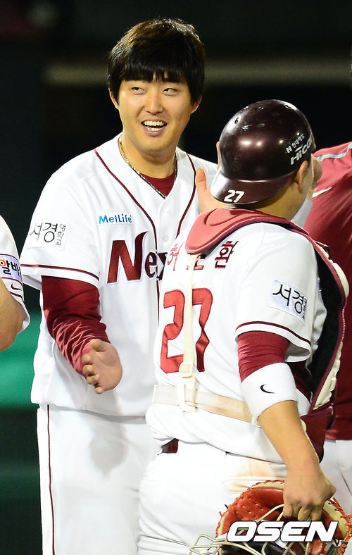 경기를 마치고 넥센 김영민이 마운드 근처에 모여서 하이파이브를 하고 있다. / rumi@osen.co.kr