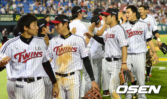 경기 종료 후 LG 선수들이 승리의 기쁨을 나누고 있다. /sunday@osen.co.kr