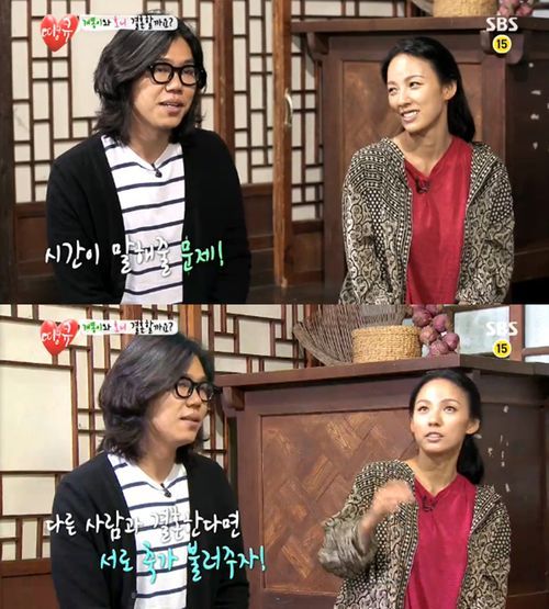 MC 차인표가 "두 사람 결혼하지 않을 거냐"고 묻자 이상순은 "만나다가 자연스럽게 때가 되면 하겠다"고 말했다.