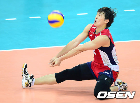 8일 오후 경기도 수원실내체육관에서 열린 '2013 월드리그 국제남자배구대회' 대륙간 라운드 2주차 한국과 핀란드의 경기, 1세트 한국 한선수가 리시브를 하고 있다.