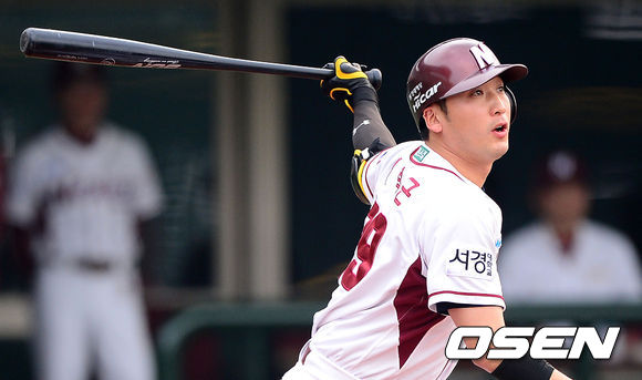 8일 오후 서울 목동야구장에서 열린 '2013 한국야쿠르트 세븐 프로야구' 넥센 히어로즈와 KIA 타이거즈의 경기, 1회말 1사 2루에서 넥센 이택근이 선제 우전 적시타를 날리고 타구를 바라보고 있다.