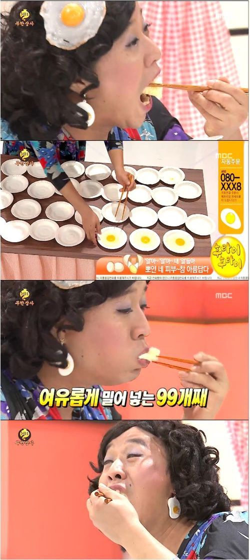 방송인 정준하가 계란프라이 100개를 먹어대며 ‘먹는 방송’의 1인자다운 면모를 과시했다.