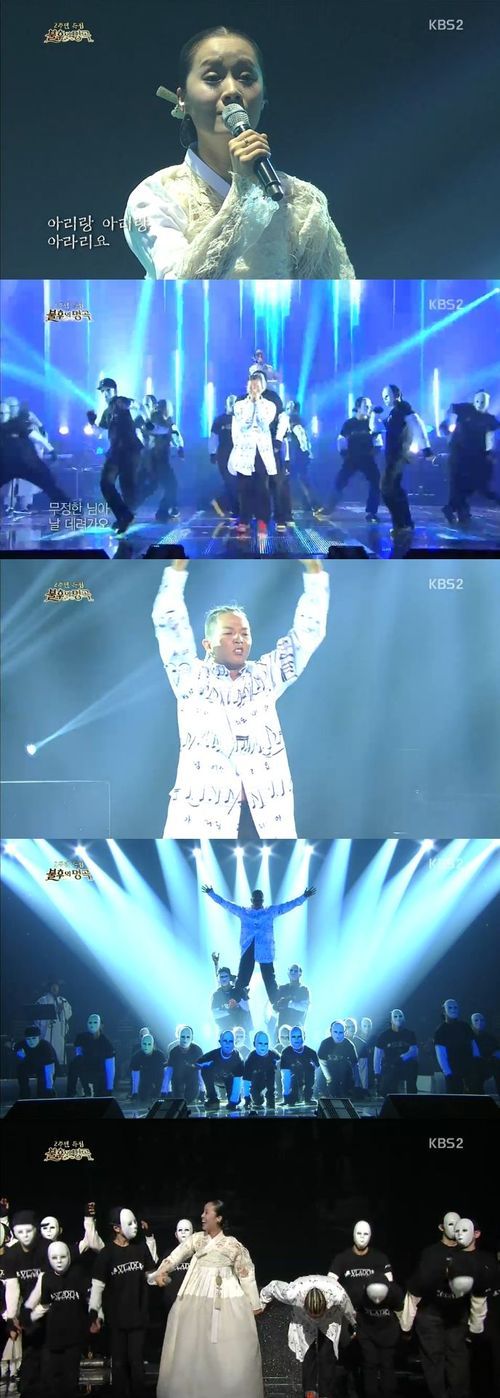 팝핍현준-박애리 부부는 8일 오후 6시 15분 방송된 KBS 2TV 예능프로그램 '불후의 명곡-전설을 노래하다'(이하 '불후')에서 우리 전통 민요 '아리랑'을 현대적으로 재해석한 화려한 무대를 선보였다.